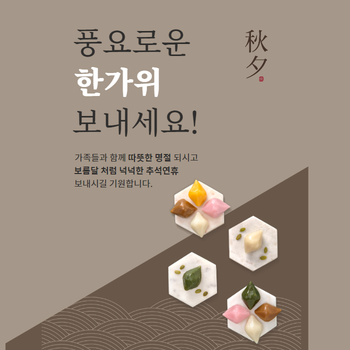 추석명절을 맞아 마음 따뜻한 시간 되시길 기원합니다. 풍요로운 가을을 맞아 올해 있었던 힘들었던 일들도 잘 마무리되길 진심으로 바랍니다. 항상 건강하시고 행복한 날들 되시길 바랍니다.