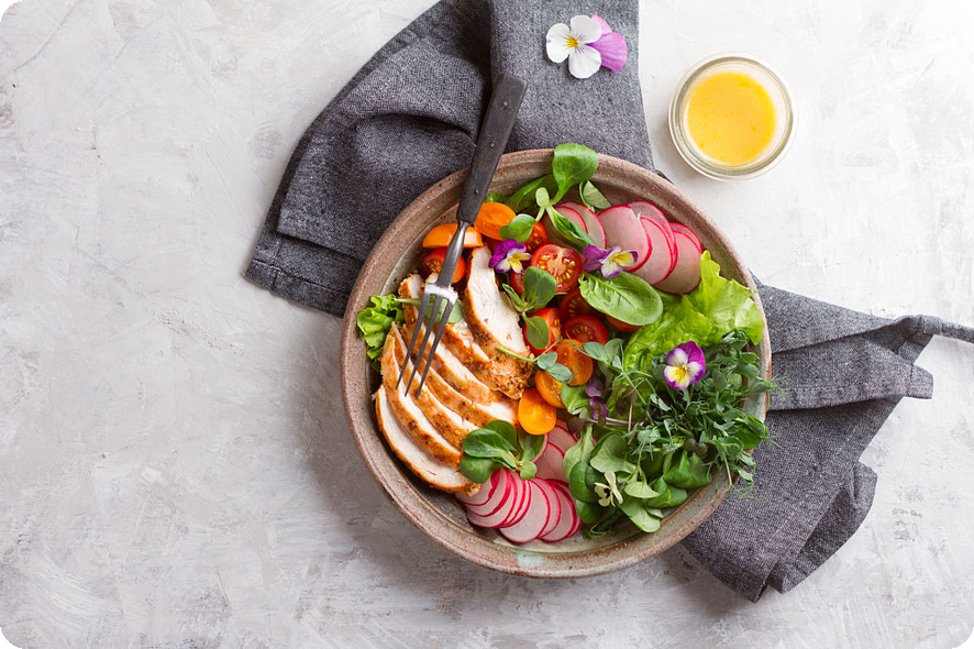 - 닭가슴살 샐러드: 닭가슴살, 다양한 채소, 아보카도를 조합하여 건강한 샐러드를 만들어 보세요.